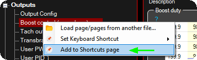 When working with a more advanced tune, sometimes it is hard to find the correct settings page, by adding settings pages to the Shortcuts tab, you will find the correct settings faster.