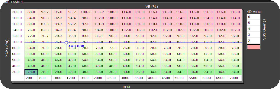 In the above example, we have changed the 4D axis source to VSS Gear in the main VE table. And default there is only two 4D axis values enabled.
